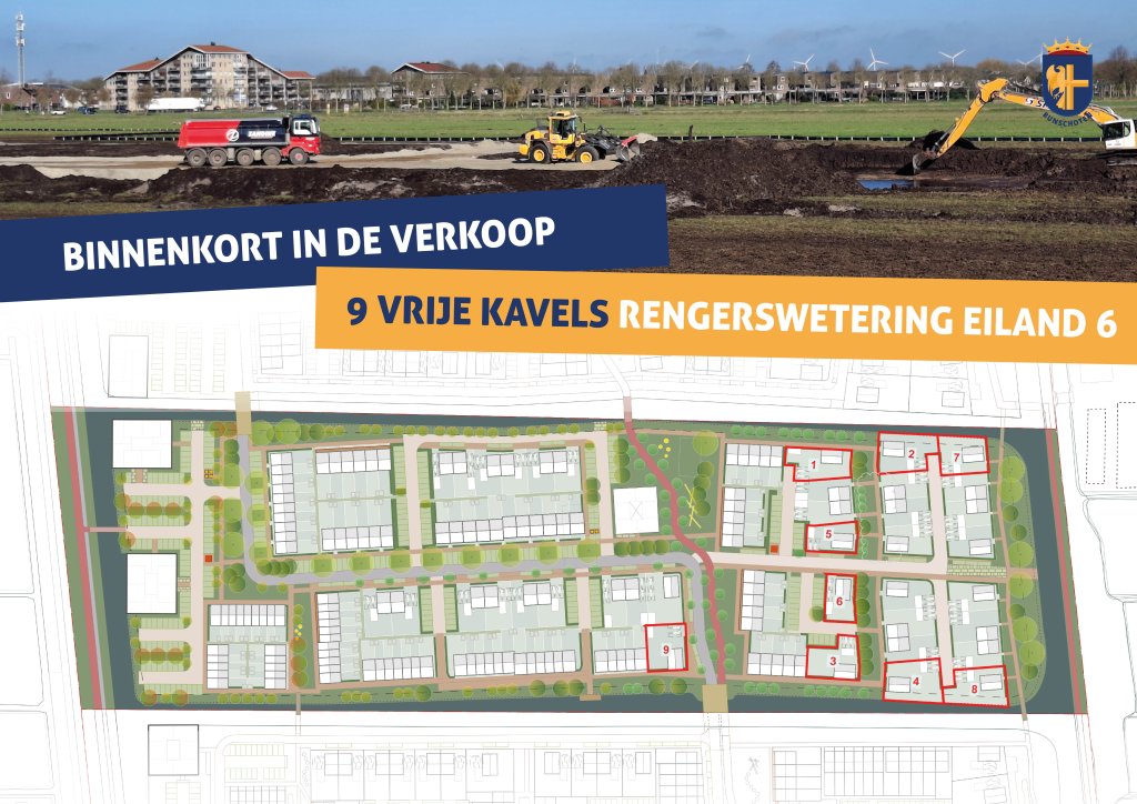Rengerswetering is volop in ontwikkeling! De plannen voor eiland 6 zijn klaar en er wordt hard gewerkt om het gebied bouwrijp te maken. Naast de woningen die projectmatig worden ontwikkeld, brengt de gemeente Bunschoten binnenkort 9 vrije kavels in de verkoop voor particulieren.
